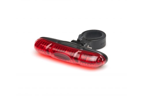 Wąska i podłużna tylna lampa rowerowa, która dzięki 5 diodom jest widoczna z 500m.
