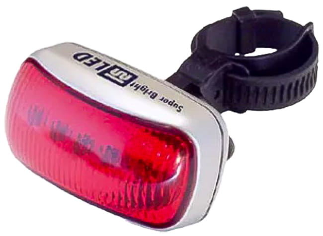 Lampa tylna prostokątna o super jasnym świetle 5 czerwonych diod LED, możliwe 4 tryby świecenia: 2 pulsujące, stały i sekwencyjny. Posiada praktyczne, mocne zapięcie. Długi czas świecenia do 150 godzin.
