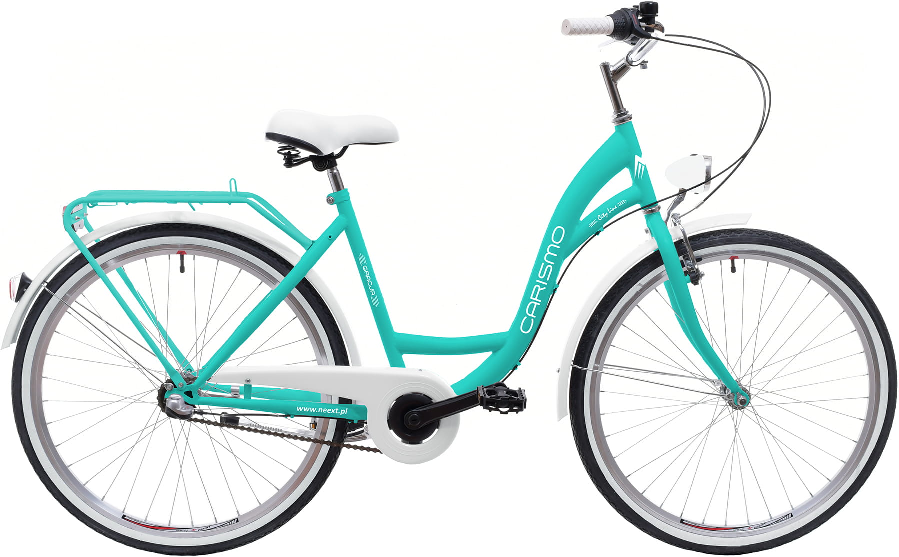 Rower Miejski Damski NEEXT GRACJA 26" Aluminiowy 3 biegów Shimano LAZUROWO BIAŁY