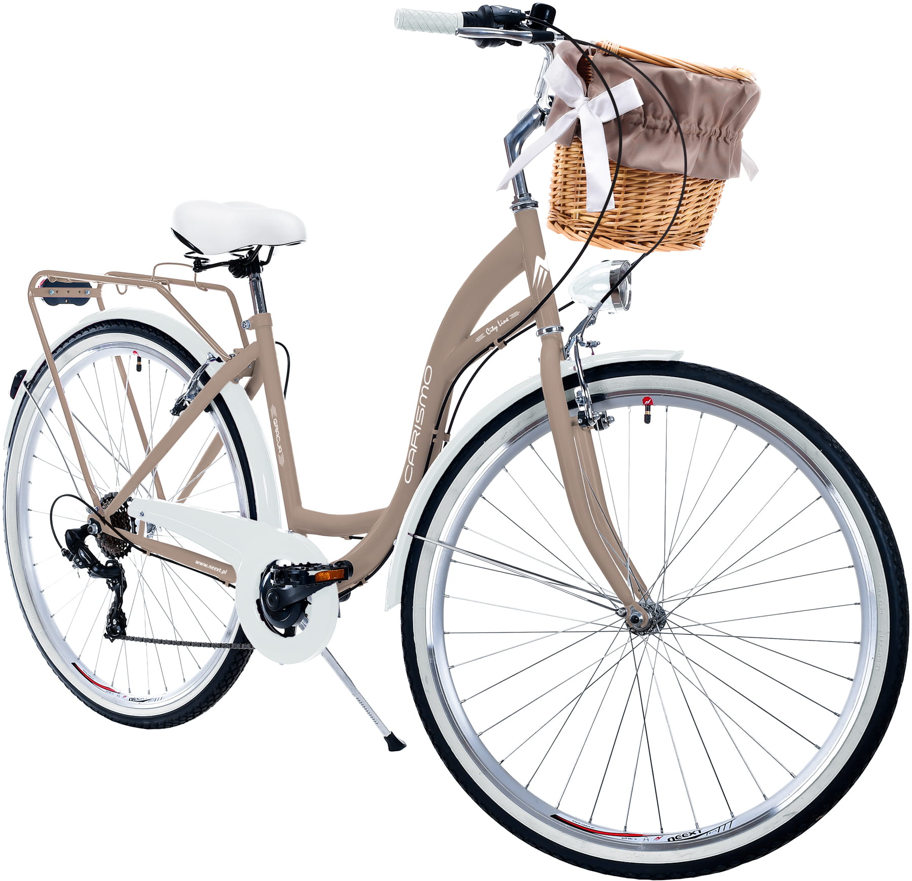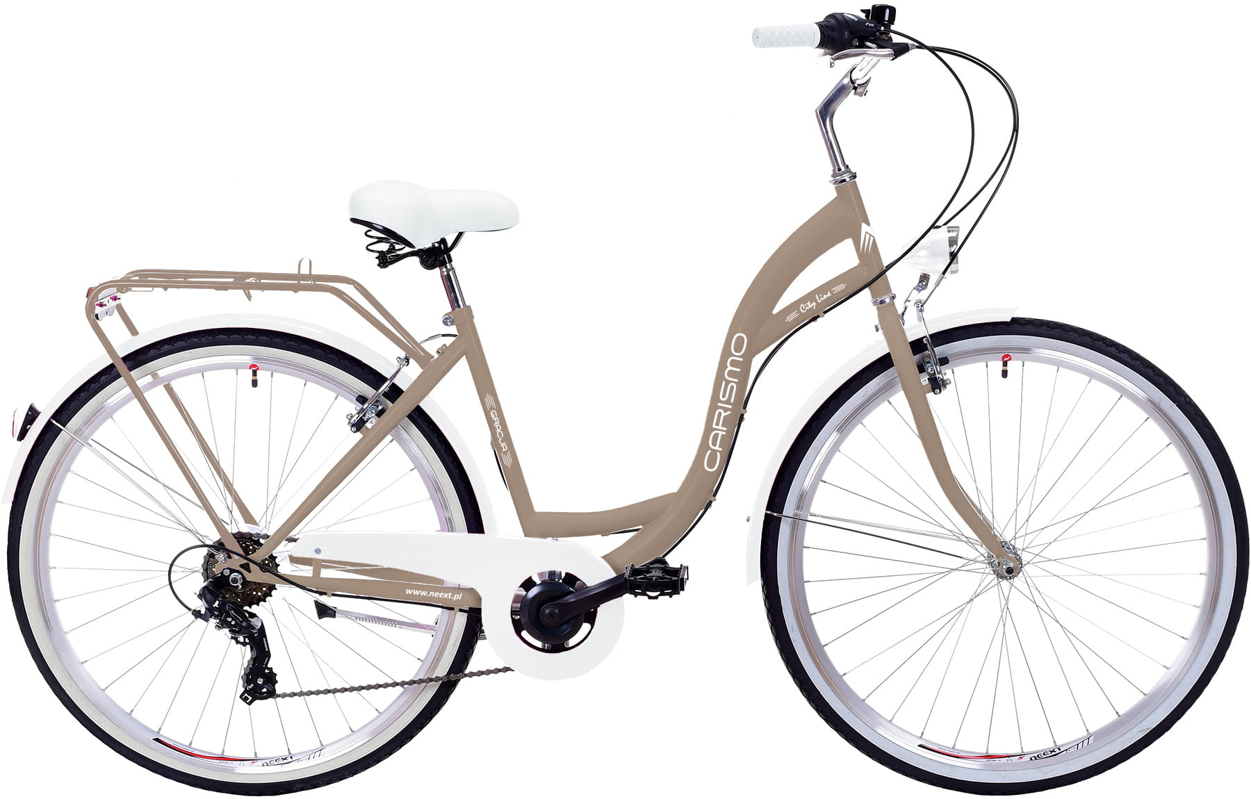 Praktyczny i wygodny rower miejski 28" CTB to idealny środek transportu na coraz bardziej zatłoczonych drogach. Linia City to idealne połączenie miejskiego stylu, ergonomicznej budowy i wysokiej klasy technologii. W tej grupie każdy znajdzie rower odpowiedni do swoich potrzeb, niezależnie od tego, czy poszukuje stylowego roweru, czy prostego środka transportu. Ciekawa kolorystyka i modny design zapewniają atrakcyjny wygląd, natomiast pełne wyposażenie (błotnik, osłona łańcucha itd.) umożliwiają użytkowanie roweru w różnych warunkach atmosferycznych. Zastosowana rama o odpowiedniej geometrii, z nisko umiejscowioną rurą ułatwiającą wsiadanie i zsiadanie z roweru, siedmiobiegowej przerzutki SHIMANO oraz wzmocnionych obręczy kół, zapewnia niezawodność, efektywność i znakomity komfort jazdy. Rower produkowany w Polsce.