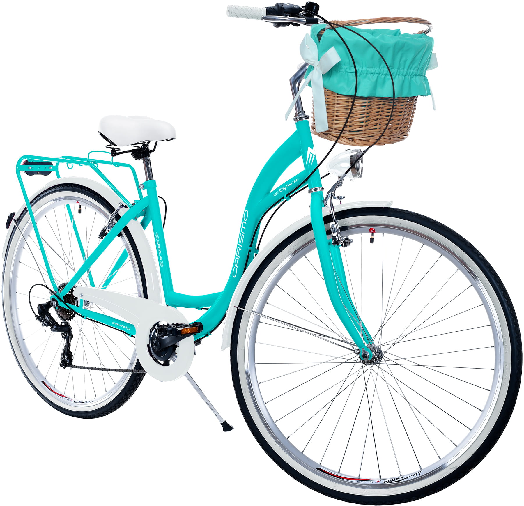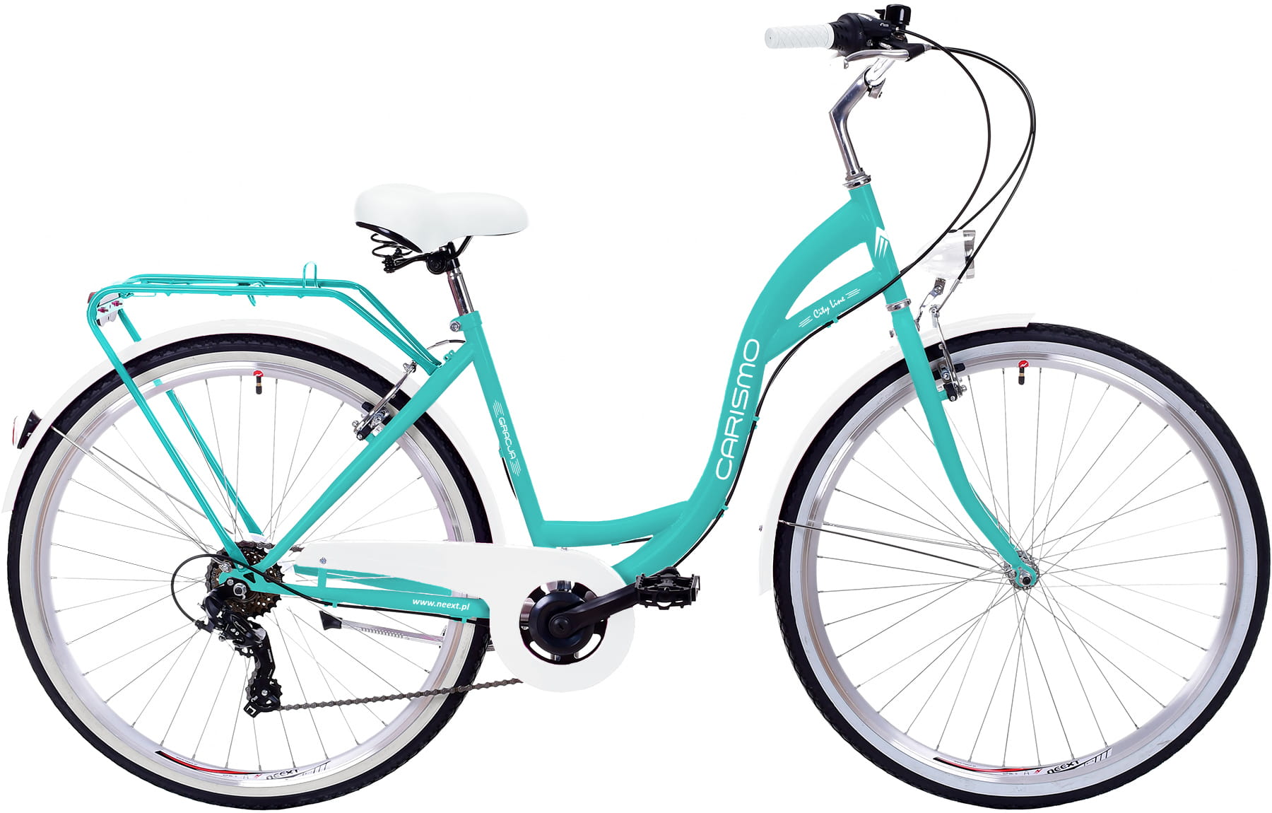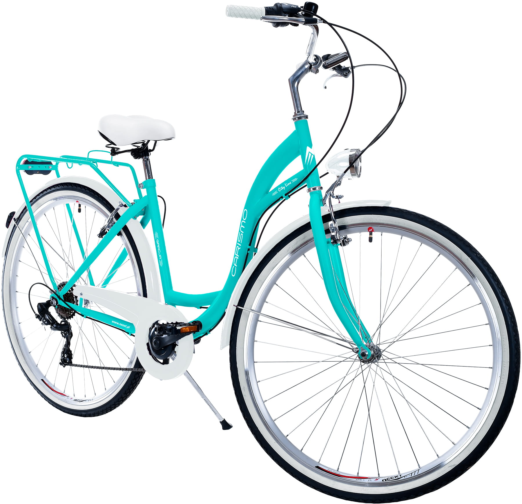 Rower Miejski Damski NEEXT GRACJA 28" 7 biegów Shimano LAZUROWO BIAŁY