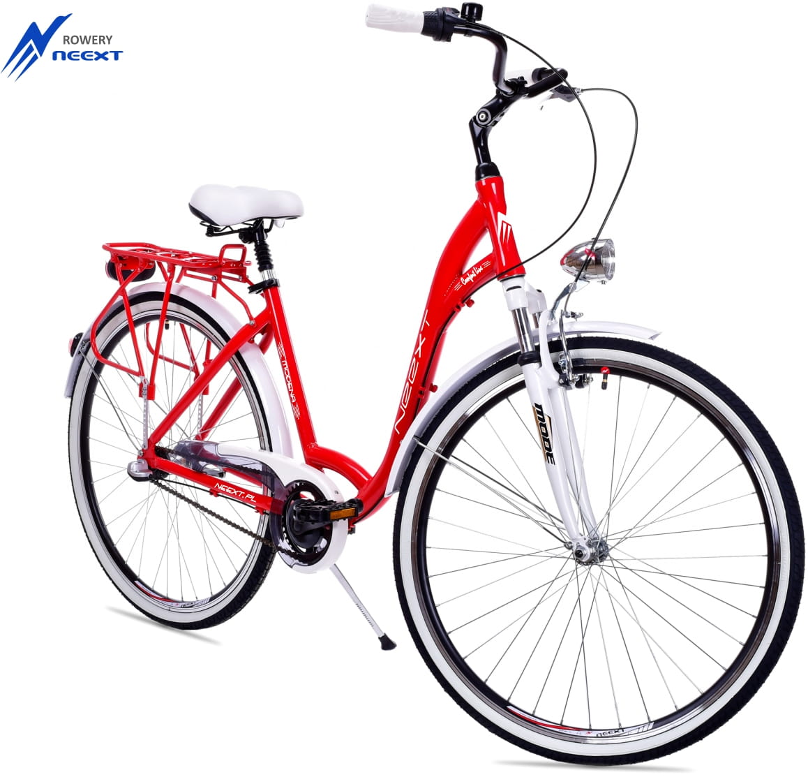 Rower Miejski Damski NEEXT MODENA 28" Aluminiowy 3 biegi Shimano CZERWONO BIAŁY