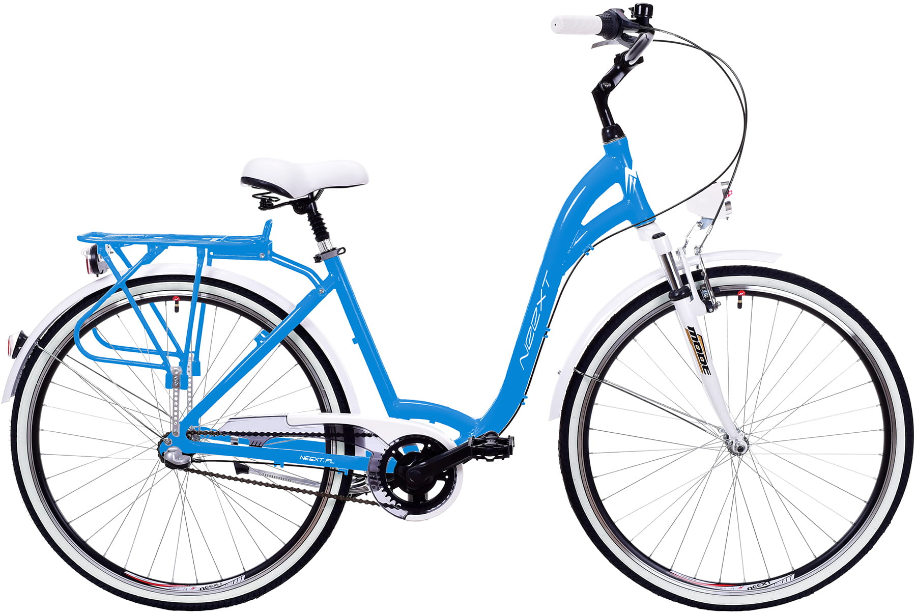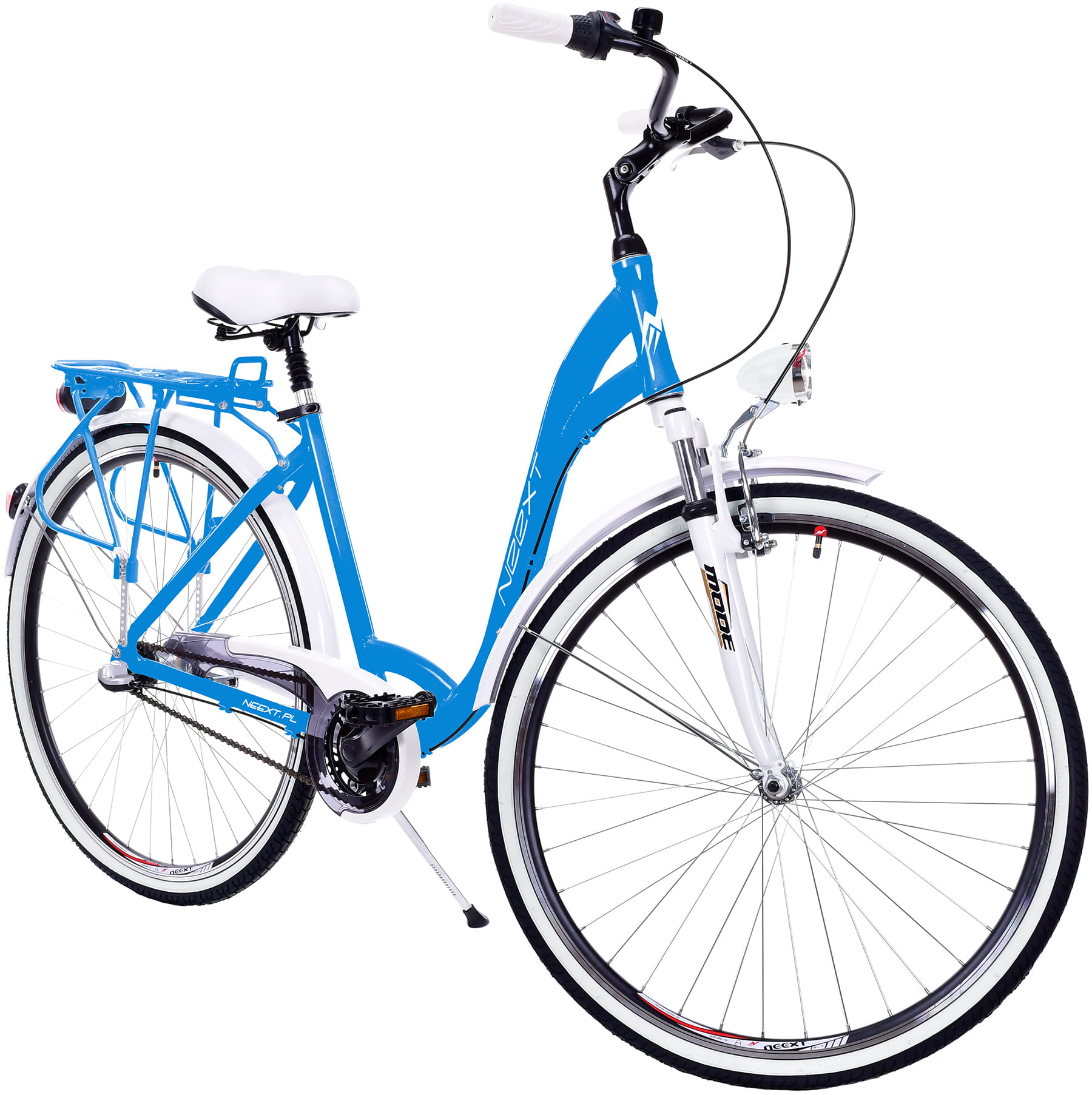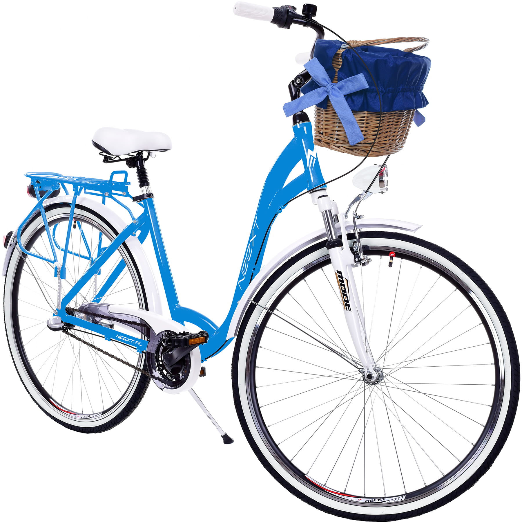 Rower Miejski Damski NEEXT MODENA 28" Aluminiowy 3 biegi Shimano NIEBIESKO BIAŁY